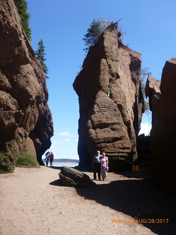 The famous Hopewell Rocks, where you can walk on the sea bed at low tide. At high tide these rocks are surrounded by water 10 ft. deep. People kayak around them. Debbie and I did an adventurous walk and around the corner from the cliffs was an expansive tidal flat bisected by a small river.